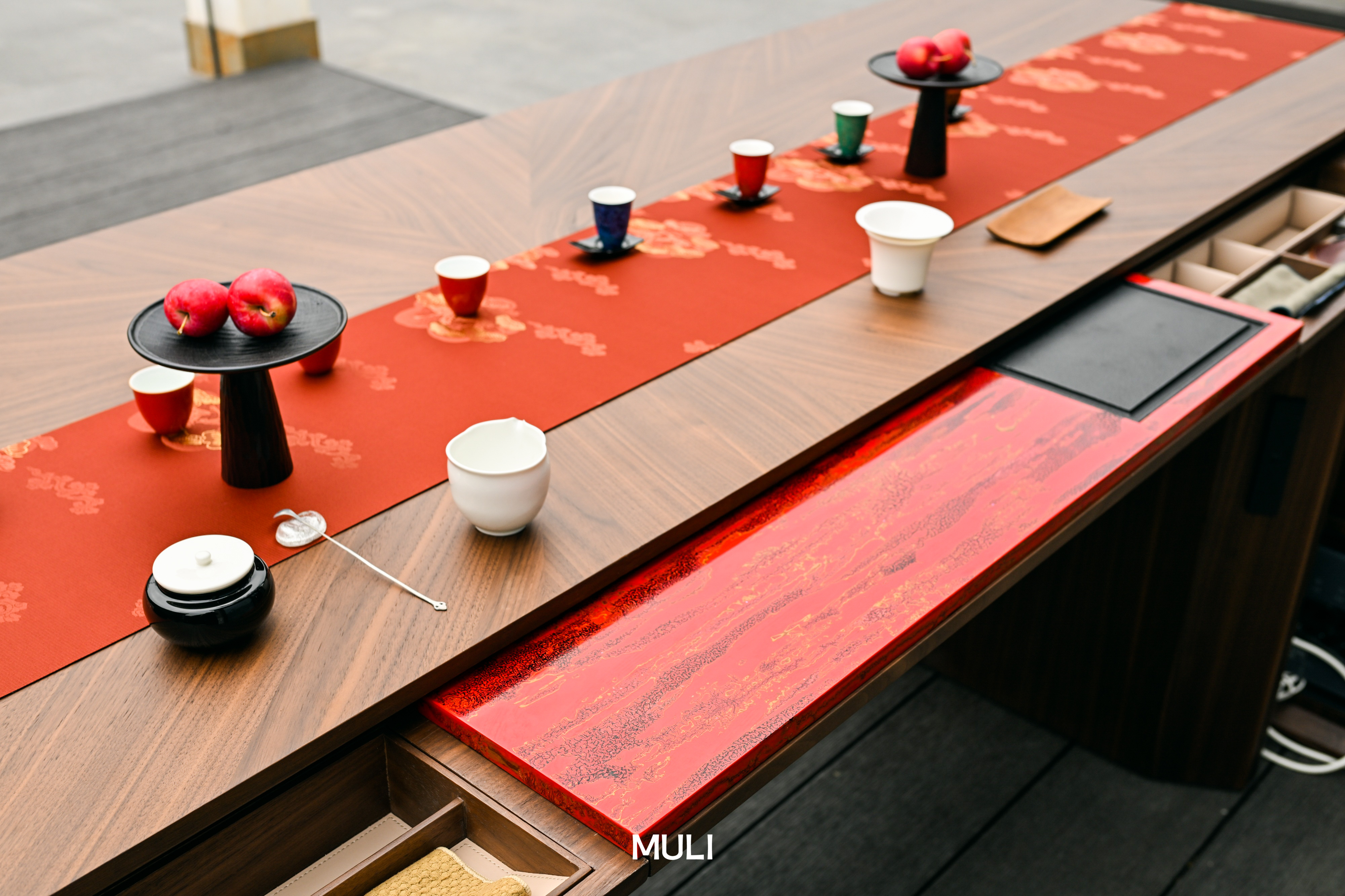 A dialogue of civilizations spanning eight thousand years, lacquer craftsmanship, as a traditional art form, has its own development and evolution process. Every innovation in lacquer art is a dance between artisans and The Times. With integrity towards users, sincerity towards works, patience towards quality and reverence for traditional culture, this collaboration between Muli and artist Teacher Long Yi represents an innovation in the modernization and artistry of lacquer craftsmanship. From the portrayal of the noble life symbolizing luxury and charm in ancient times to the integration of the soul of lacquer into modern home life, the wood inside and out awakens traditional intangible cultural heritage and leads into the high-quality luxurious life of the contemporary era.